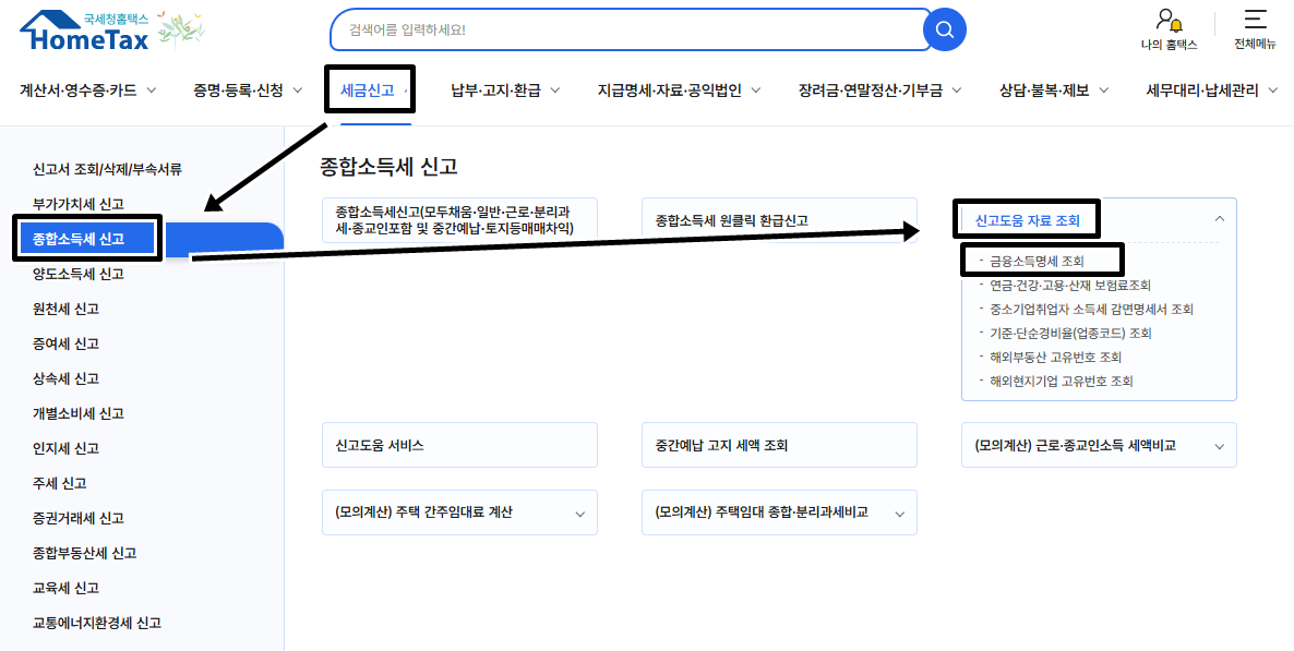 1. 금융소득종합과세 신고자료 조회하는 방법